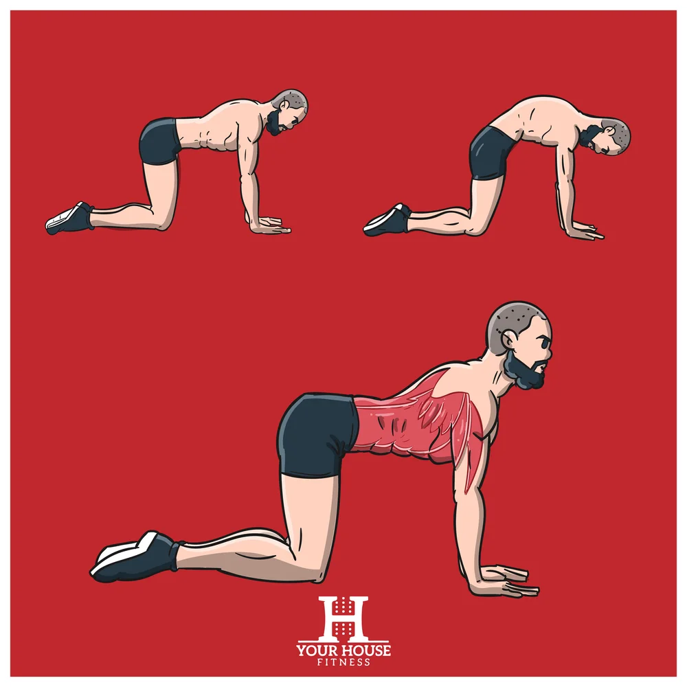 Let your stomach fall towards the floor (increasing the arch in your low back) and allow your shoulder blades to fall together (move towards the spine).